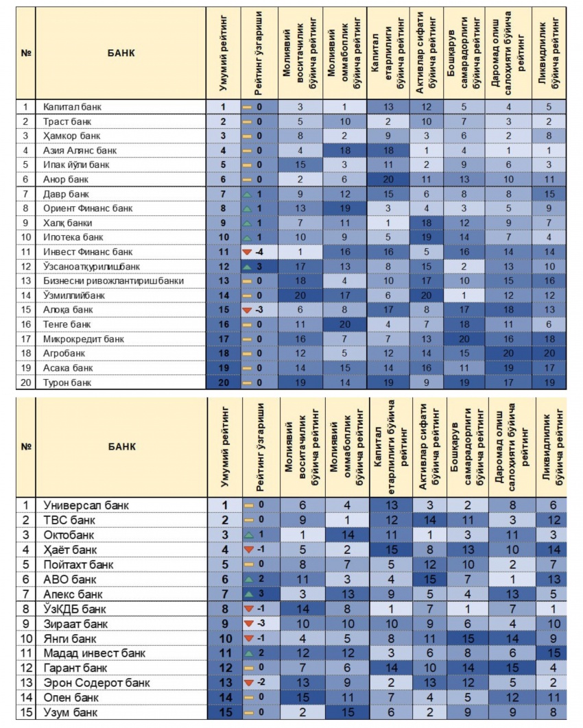 Центром экономических исследований и реформ по итогам IV квартала 2025 года опубликован «Индекс активности банков», охватывающий 35 коммерческих банков страны. Среди крупных банков лидирующие позиции заняли Капитал банк, Трастбанк и Хамкор банк. Наибольший рост в общем рейтинге продемонстрировал Узсаноаткурилишбанк.В банковской системе зафиксирована положительная динамика