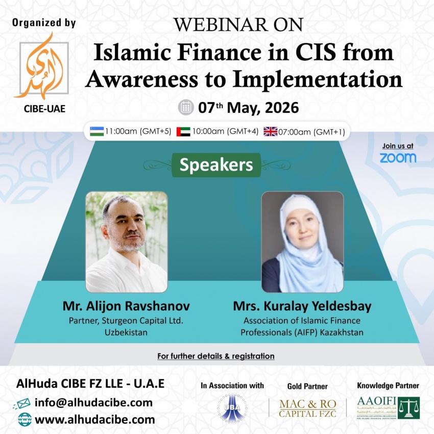 Ассоциация банков Узбекистана совместно с Центром исламского банкинга и экономики AlHuda (AlHuda CIBE) организует вебинар.